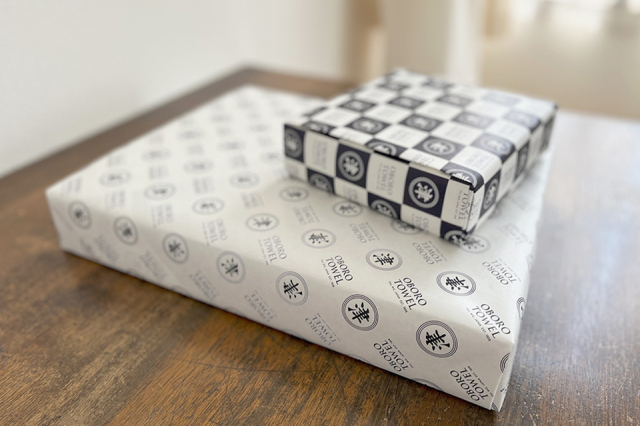 専用のギフトボックスに商品をお詰めし、オリジナルの包装紙でお包み致します。