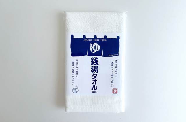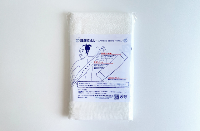 お風呂での使用を目的に作られたのがこの銭湯タオル。タオルの両端は薄い平織りにしたことで、しっかりと握れるので背中洗いも力をいれてゴシゴシ洗うことができます。通常のフェイスタオルより少し長めなのもお風呂で背中を洗うことを想定したこのタオルのこだわりです。