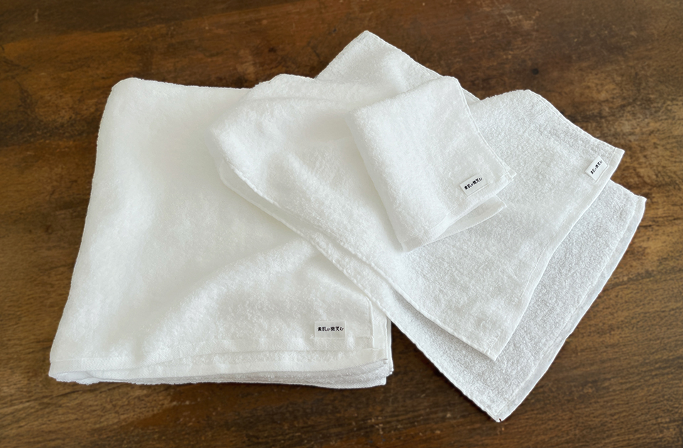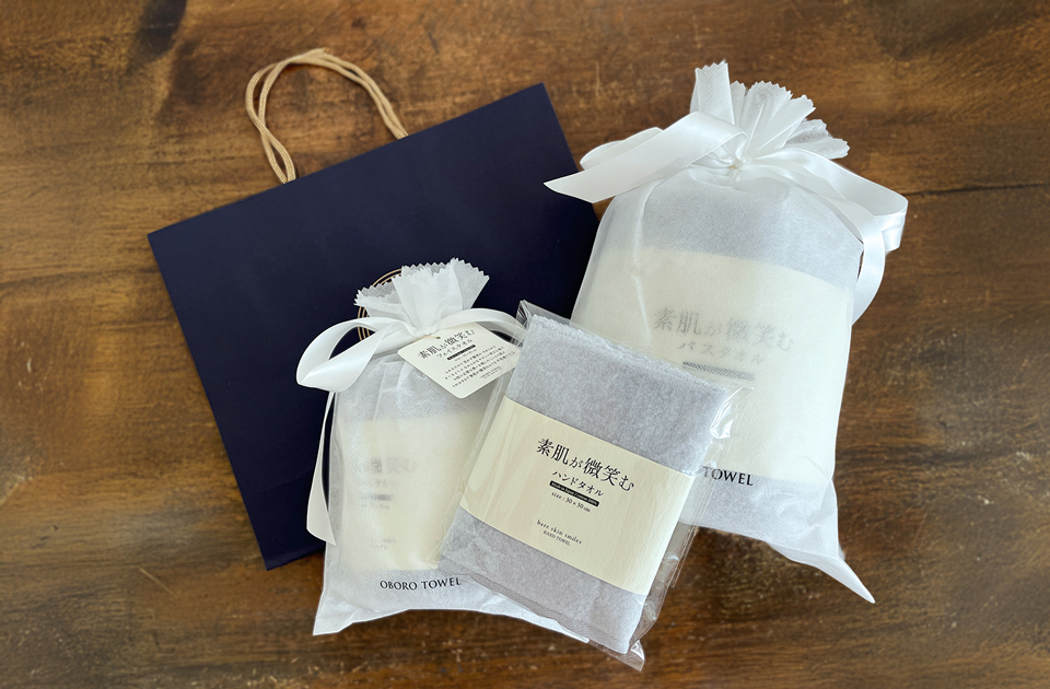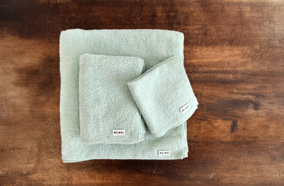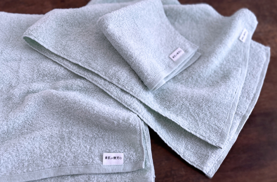 素肌が微笑むシリーズにハンドタオルが加わり、バスタオル・フェイスタオルとともに3枚を揃えていただけるようになりました。このラインアップの充実に合わせて、3枚セットをうれしい特別価格でご用意しました。