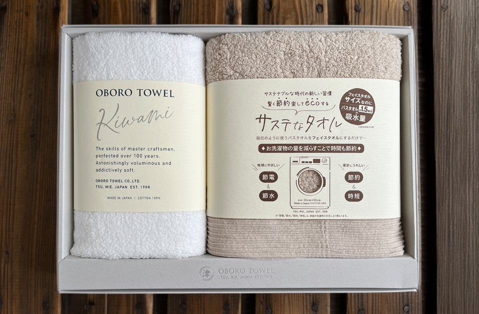 | 商品サイズ: | ・サステなタオル/32×90(cm) ・おぼろ100年の極-modern style-/33×85(㎝) |